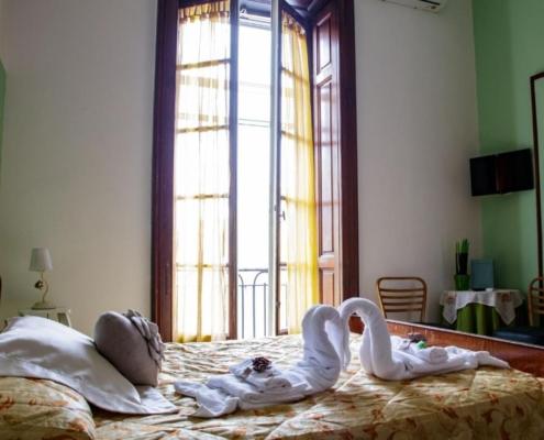 Le camere sono arredate con gusto semplice ed elegante, pensate per garantire relax e funzionalità. Gli ambienti sono luminosi, ben curati e dotati di comfort essenziali come aria condizionata, connessione Wi-Fi gratuita, televisione e bagno privato. Alcune stanze dispongono anche di balcone, perfetto per godere dell’aria e dei suoni della città.